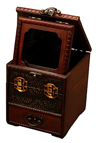 Anberotta ジュエリーボックス コスメ メイクボックス 小物入れ 化粧品 ミラー 鏡付き 木製 アンティーク調 ケー