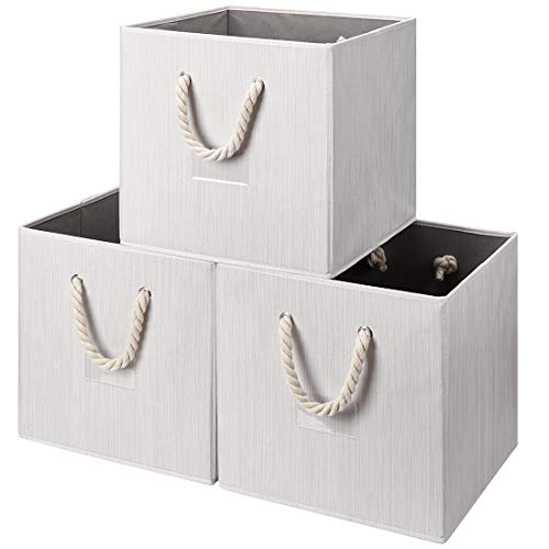 i BKGOO折りたたみ式収納キューブビンホワイトベージュバンブーファブリック折りたたみ式耐性バスケットボッ