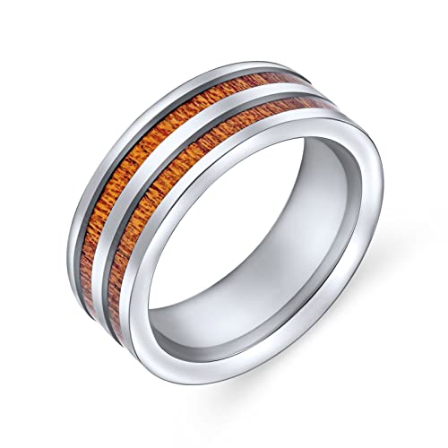 (ブリングジュエリー) チタン製 木目柄 インレイ ダブルストライプ コンフォートフィット ワイドリング 幅8mm
