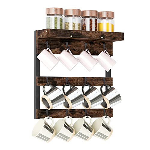 ウォールシェルフ コーヒーマグカップ収納ラック 壁付け キーフック ウォールフック 鍵収納 壁掛け コーヒー