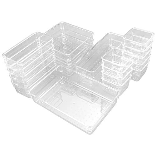 引き出し用トレー 仕切りボックス 20点セット 異なる5サイズ 整理整頓 滑り止め 小物収納 クリア素材
