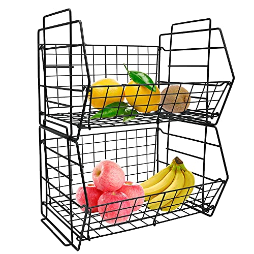 バスケット ワイヤーワ 2個組スタッキングカゴ 大容量 タッキング キッチン収納 収納ケース スプレー 鉄 アイ