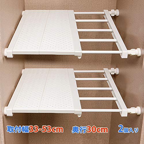 2個入り つっぱり棚 強力突っ張り棚 メッシュ棚付 ワイド幅 日本語取扱書付 伸縮棚 奥幅30cm 33-53cm