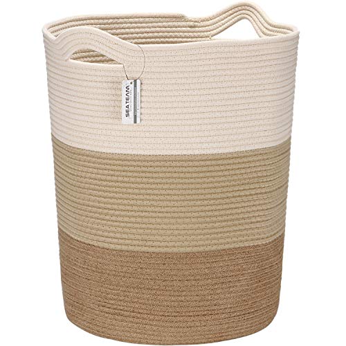 Sea Team 収納バスケット 収納かご 収納ボックス ロープバスケット 持ち手付き ランドリー ナチュラル 赤ち