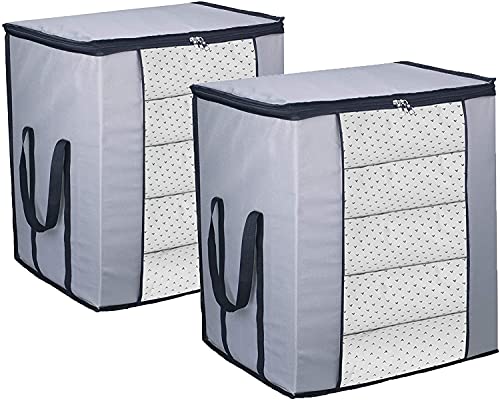 LONGTEAM 衣類収納ボックス 布団収納袋 ケース 防水防塵 湿気防止 防虫 持ち手付 折り畳み 透明窓付 2点セット (