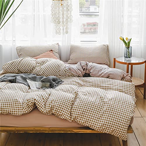 NSNLGSGC 掛け布団カバー 掛ふとんカバー セミダブル 単品売り 掛けふとんカバー ふとんカバー チェック ブラウ