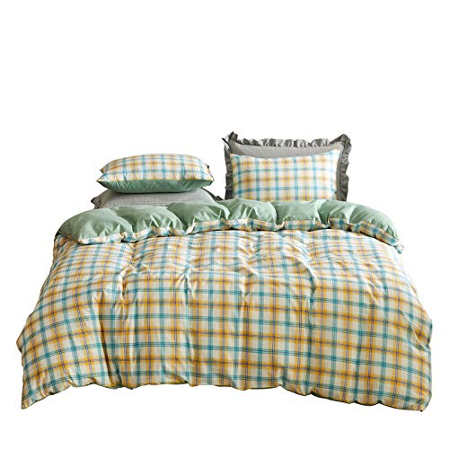 Hanacat 掛け布団カバー 綿100% セミダブル 170×210cm 単品売り 吸湿性 通気性 チェック柄 グリーン