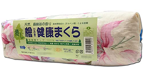 国産檜(ひのき)チップ100% 健康枕(まくら) 約30×9×9cm (花柄ピンク)