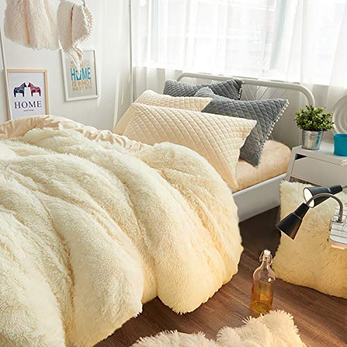 Hanacat 布団カバーセット セミダブル 4点セット 毛足の長いシャギー あったか 冬用 掛け布団カバー ボックスシ