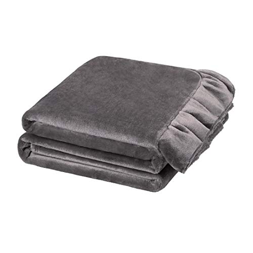 PiccoCasa フランネルフリースブランケットスロー 130*150 cm フリルトリム付き 柔らかく軽量のマイクロファイバ