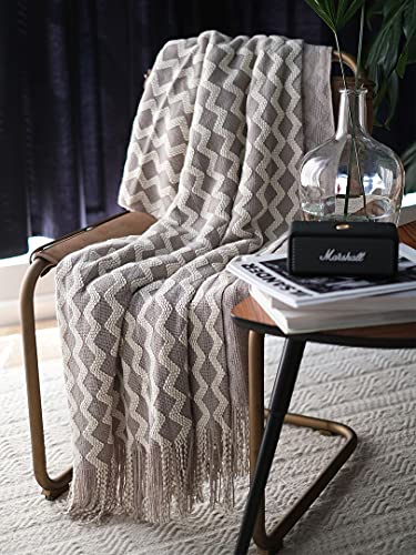 Hisashi ブランケットソファデコレーション 毛布ベッド ニット毛布 フリンジ ホワイトストライプ 140x220cm