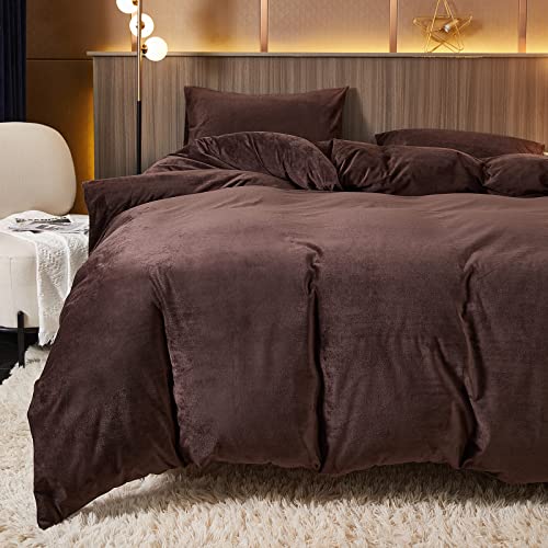 かけ布団カバー マイクロファイバー 暖かい 秋冬用 洗える 静電気防止 ファスナー仕様 ブラウン クイ