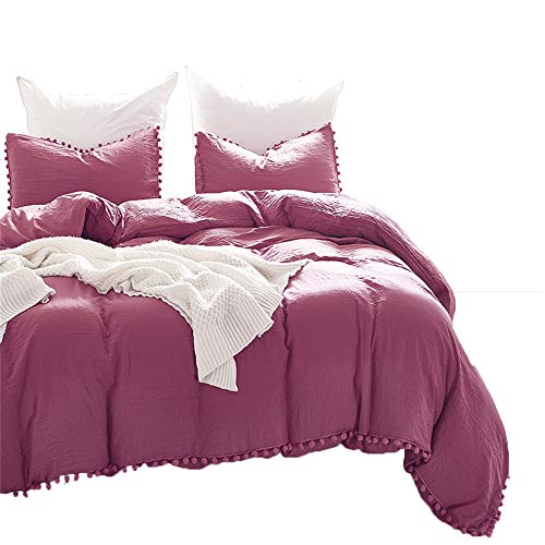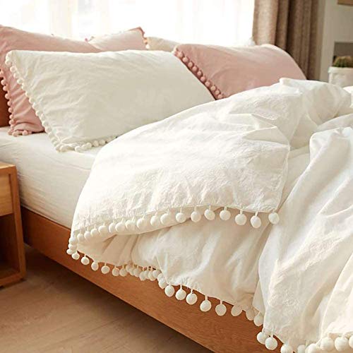 布団カバー 4点セット ダブル ポンポン フリンジ 掛け布団カバー ボックスシーツ 枕カバー 寝具カバー ピーチ