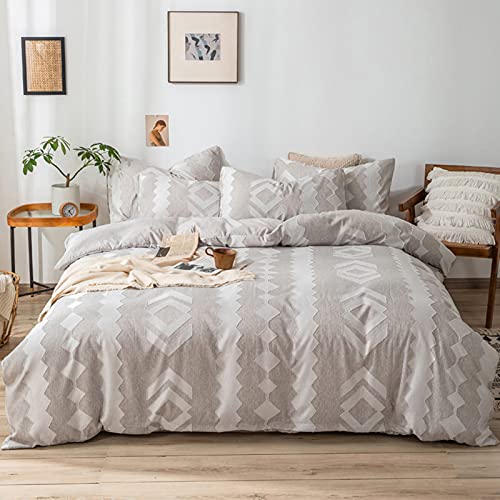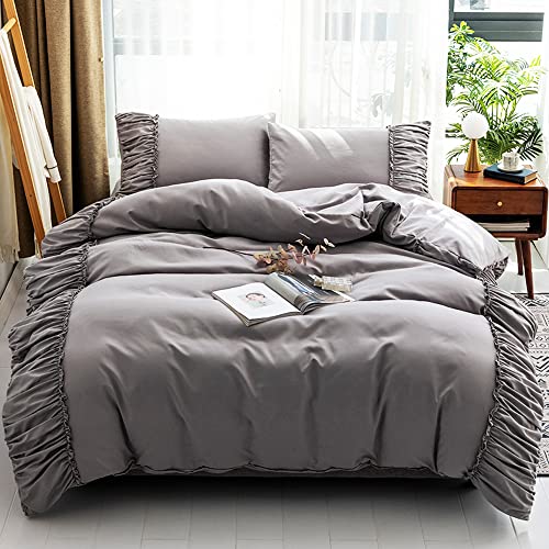 Ovege 布団カバー 3点セット シングル グレー 掛け布団カバー ボックスシーツ 枕カバー 洋式・和式兼用 2方向ジ