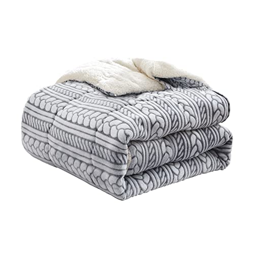 Hanacat 掛けふとん ダブル 毛布布団 中綿入り 掛け布団 シープ調 裏ボア 厚手 発熱 蓄熱 ストライプ柄 グレー 19