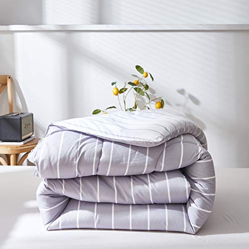 Hanacat 掛け布団 ダブル あったか 掛けふとん 蓄熱 抗菌防臭 オールシーズン 洗える ボーダー柄 グレー 190×210cm