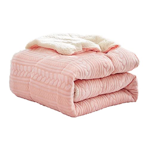 Hanacat 掛けふとん シングル 毛布布団 中綿入り 掛け布団 シープ調 裏ボア 厚手 発熱 蓄熱 ストライプ柄 ピンク