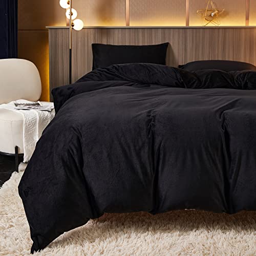 かけ布団カバー マイクロファイバー 暖かい 秋冬用 洗える 静電気防止 ファスナー仕様 ブラック キ