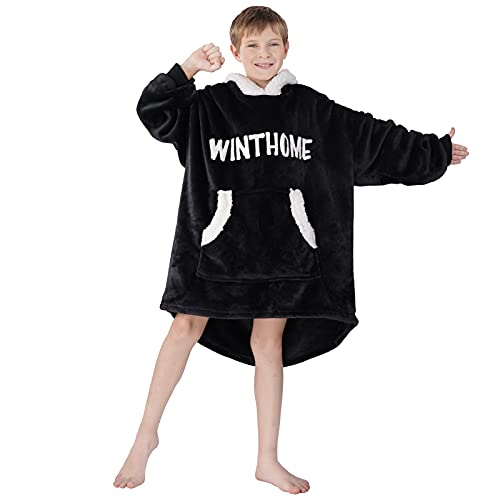 Winthome 着る毛布子供用 パジャマ ポンチョ キッズ もこもこ ルームウェア マイクロファイバー フード ポケッ