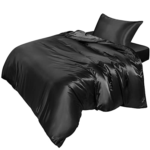 PiccoCasa 寝具カバーセット サテン 布団カバー セミダブル 4点セット シルキー コンフォーター カバーセット ダ