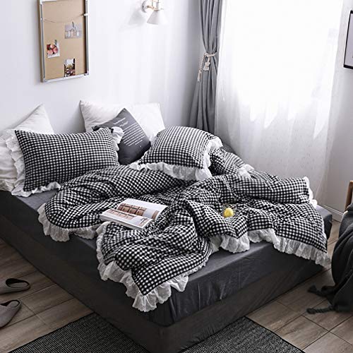 ギンガムチェック柄寝具カバー 綿100% フリルの掛け布団カバー シングル・枕カバー2枚