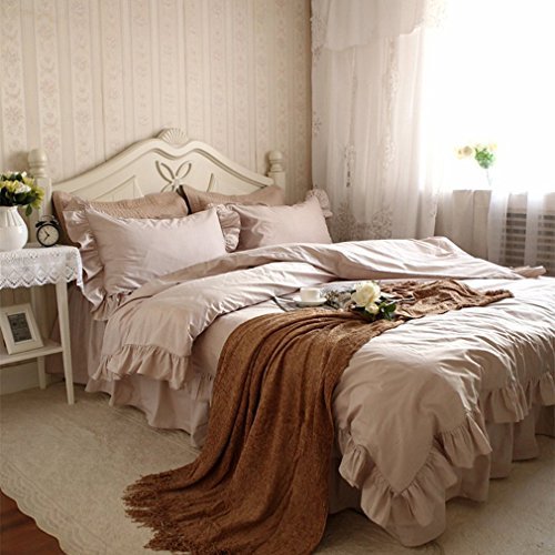 韓式優雅グレー ギャザ模様 布団カバーセット 掛け布団カバー 枕カバー クイーン