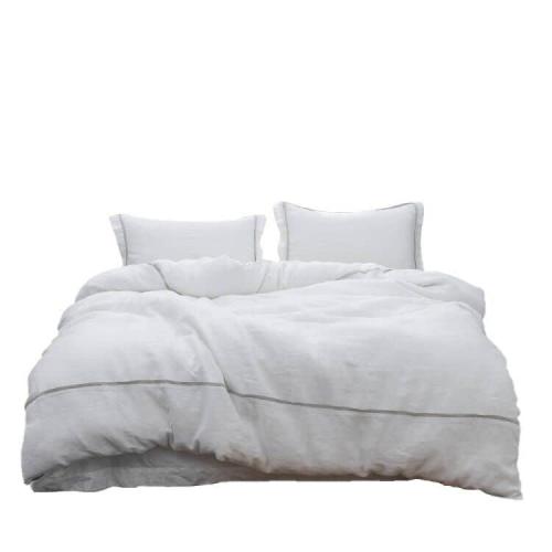 寝具カバーセット 麻 リネン100% キング 4点セット ホワイト ベッド用布団カバーセット 横縞 オールシーズン