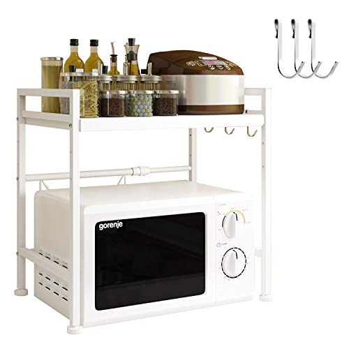 LZSHOME レンジラック レンジ上ラック 電子レンジ台 キッチンラック トースターラック 幅伸縮式 棚板高さ三段