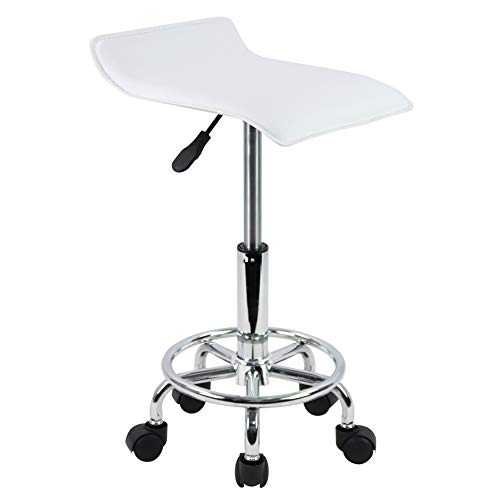 KKTONER 矩形 高さ調節可能回転昇降スツール キャスター付き フットレスト付き PUレザー ドラフトワーク作業ス