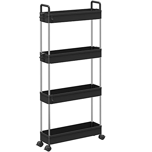 SOLEJAZZ キッチンワゴン 4段 収納カート 隙間収納 移動式 取っ手付き キッチン バスルーム 洗濯室 狭い場所用