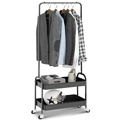 キングラック(KINGRACK) ハンガーラック 幅56cm 耐荷重30kg キャスター付き バスケット2段 衣類収納 組立品 (ブラ