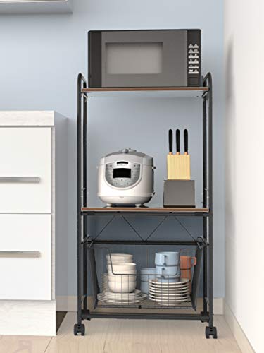 レンジ台 キッチン棚 レンジラック キッチン収納 ラック 物置ラック 幅50cm 2段棚+1バスケット キャスター付き