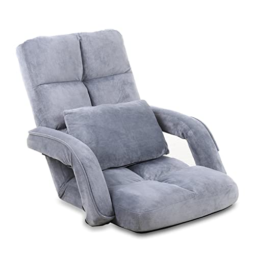 Urnodel 座椅子 肘掛け ひじ掛け付き 14段階リクライニング 折りたたみ 座椅子ソファ ふあふあ フロアチェア 低