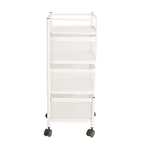 LISUEYNE キッチンワゴン 幅34×奥行40×高さ66cm 引き出し式 キャスター付き 収納かご付き オフィス収納カート ラ