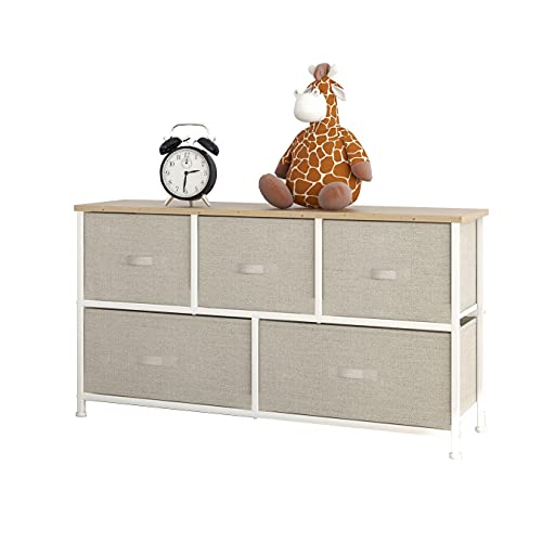Meerveil 収納 2段5杯 チェスト タンス 布製 引き出し 衣類収納 リビング収納 転倒防止 変形にくい簡単組立 ベー