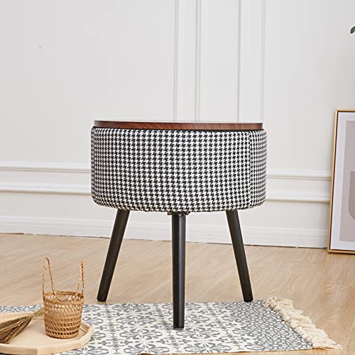 FUENTE LUZサイドテーブル 円形コーヒーテーブル 収納付き トレイ型 小物収納 一人暮らし おしゃれ パソコンデ