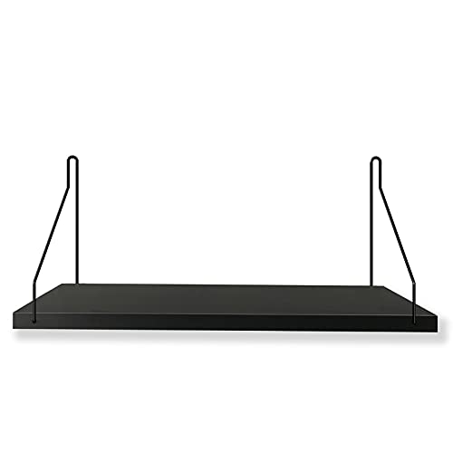 ウォールシェルフ 天然木 壁掛け棚 取付簡単 本棚 DIY 木製 飾り棚 シンプル ワイヤー付け 収納便利 (ブラック,