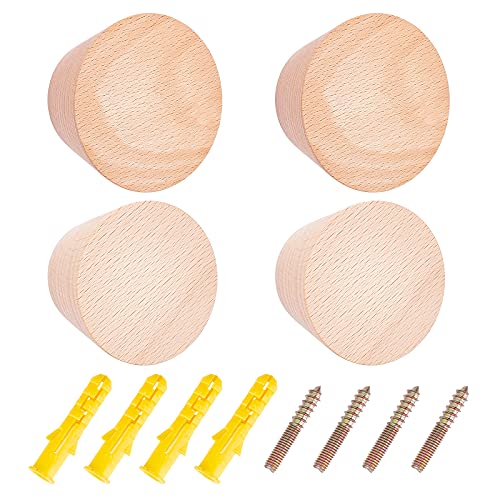 CHGCRAFT 2種類4個 木製フック おしゃれ 壁フック 上品 丸形 ウォールフック ネジ付き 壁掛けフック マフラー掛