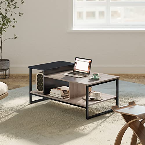 HOMOOI ローテーブル 階層設計 木制センターテーブル コーヒーテーブル 収納 リビング用テーブル 幅100×奥行60cm