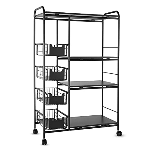 Supark キッチンワゴン 収納ラック 調味料ワゴン 引き出し キャスター付き スリム レンジ台 食器棚 キチンラッ