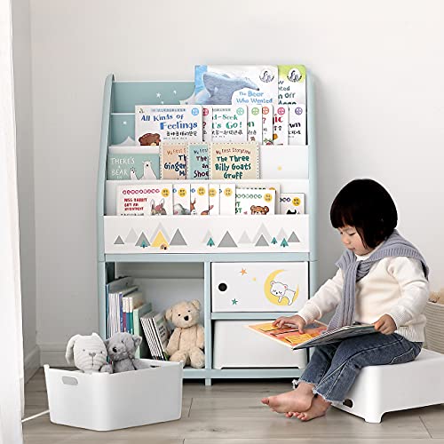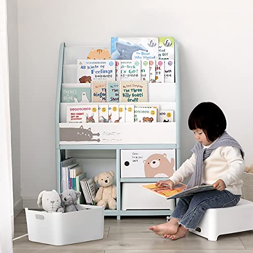PonyLes 絵本棚 絵本ラック 椅子付き 大容量ラック 200冊収納でき 組み立て簡単 角丸く加工 ベビー 本棚 子供用