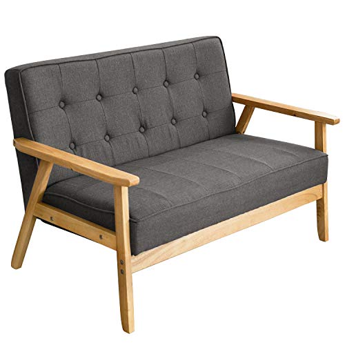 ソファ カウチ 2人掛けソファ 肘付き 天然木脚 幅約157cm レトロモダン 一人暮らし ファブリック素材 生地 グレ