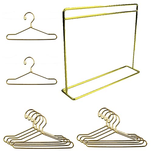 ドール服 ハンガーラック ハンガー10個セット 人形用 1/6 BJD 着せ替え 人形服 衣類ラック (01 ゴールド)