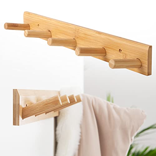 aleawol ウォールハンガー 壁掛けフック 5連 天然竹製 整理整頓 省スペース 収納フック 装飾用壁フック 帽子掛