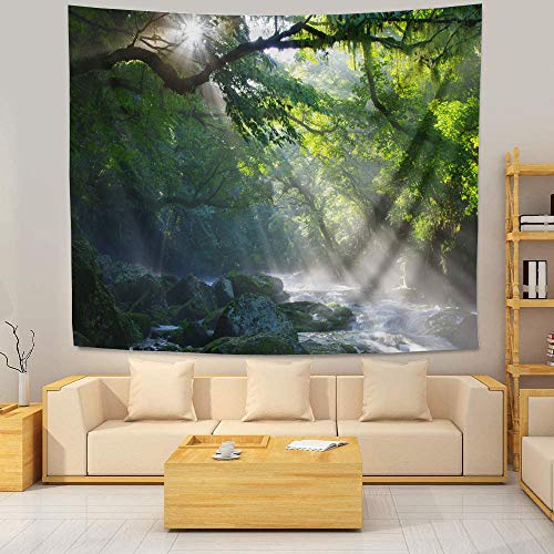 Bennyue 自然風景 森林柄 タペストリー 緑の並木 壁掛け 木漏れ日の森 クリーク 風景画 インテリア おしゃれ 多