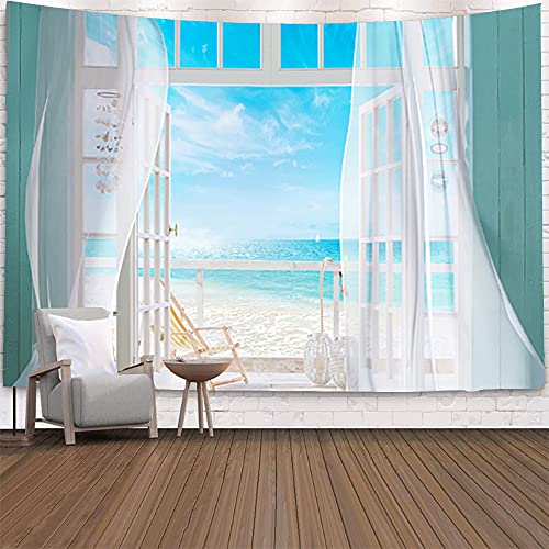 自然風景タペストリー 海とビーチタペストリー ポリエステルタペストリー壁壁飾り装飾用品130*150CM (Window)