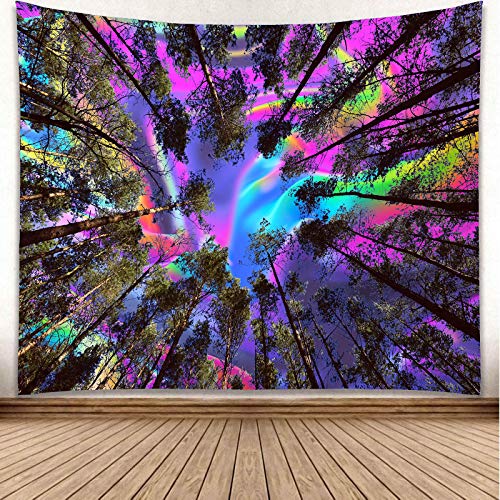 YISUREカラフルサイケデリック森星空極光レインボー タペストリー 150x100cm