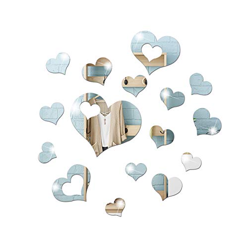 AHANDMAKER ハート型貼る鏡 64個アクリルリムーバブルラブハート型ミラー設定ウォールステッカーホームリビン