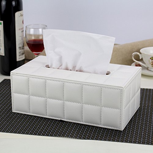 ティッシュをインテリアへ シンプル PUレザー素材 ティッシュケース ホワイト/白