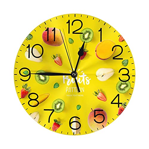 Haelhorneger フルーツ 壁掛け時計 静音 掛け時計おしゃれ シンプル連続秒針 静音 円形 電池式 大数字 見やすい